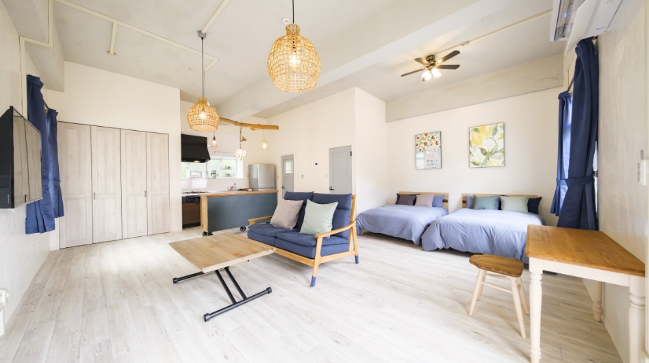 市内から徒歩5分の位置に広めのワンルームをご用意しております。最大で4名様までご利用可能です。